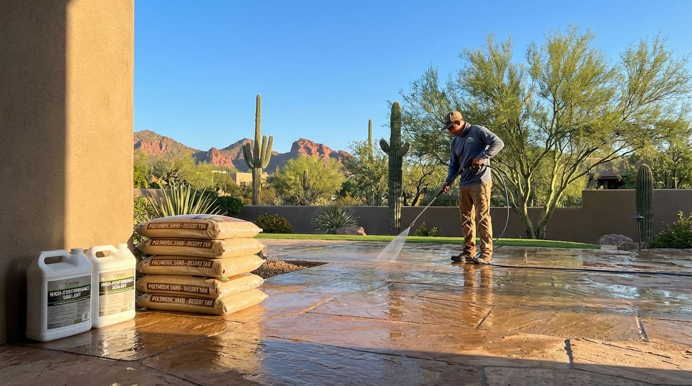 💡 Key Takeaway: Attempting to seal pavers in direct Arizona sunlight without commercial training often leads to trapped moisture and failed coatings. Trusting a local professional ensures the job is done perfectly the first time, protecting your property value.